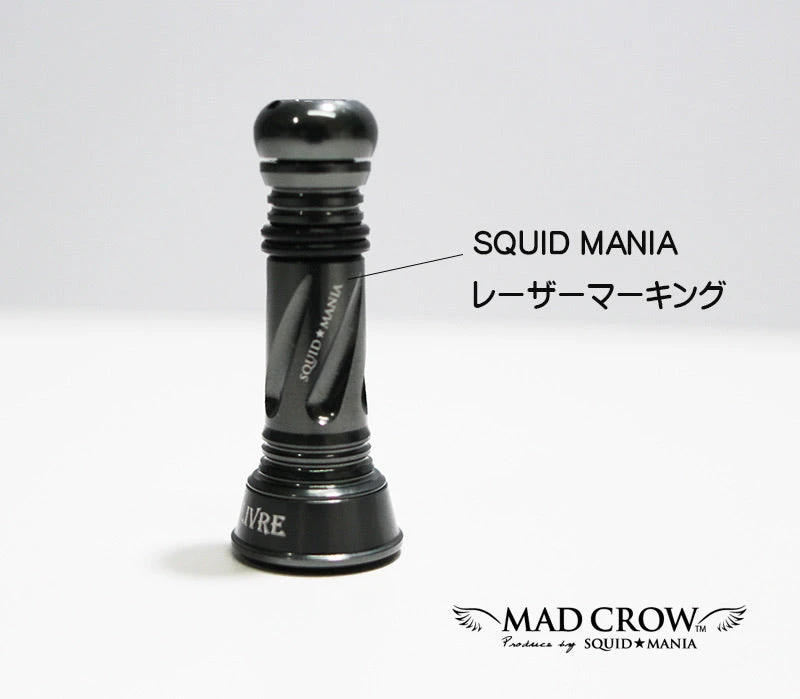 A limited edition Livre X Squid Mania custom balancer can be attached to the reel for the purpose of being of control the centre of gravity for the reel. It is a counter weight for the handle weight which leads to better balance and less wobble.