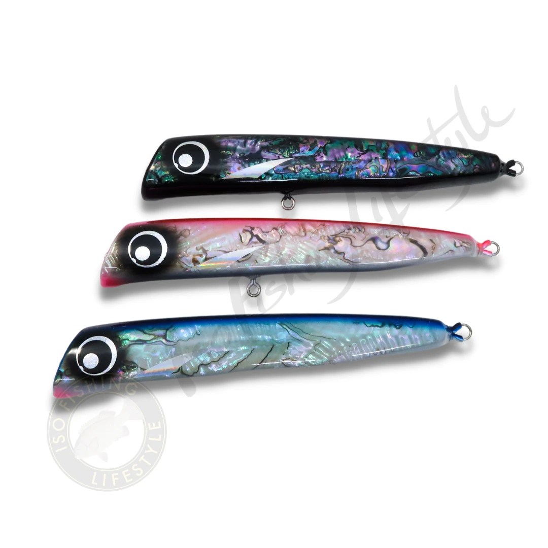 The limited edition Funky Soda 200F Swimming Popper “Swimming popper” abalone version combines the advantages of a diving pencil and a popper. Finally completed after three years of development! Moderate sound & splash! Intense flushing due to tight S-shaped action & rolling in the water! An irregular slide to show at the end of the action! Strongly entices the fish to hit the lure aggressively! The Funky Soda 200 Swimming Popper will help you meet the fish of a lifetime.Â