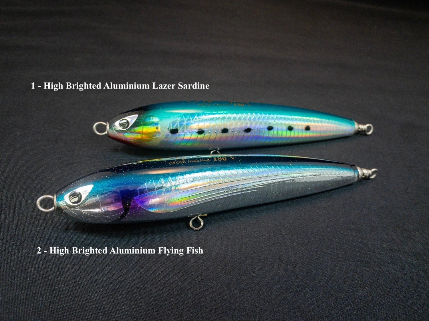 The CB One Ryan 180 stick bait is a work of art. These hand carved wooden lures feature a foil finish and a beautiful paint job. Designed to sit with its tail down at rest and create a nice bubble trail when pulled under the surface. The ‘S’ swimming action creates plenty of flash to imitate a fleeing bait fish. The Ryan 180F is an excellent lure for targeting smaller GT, Kingfish and Tuna