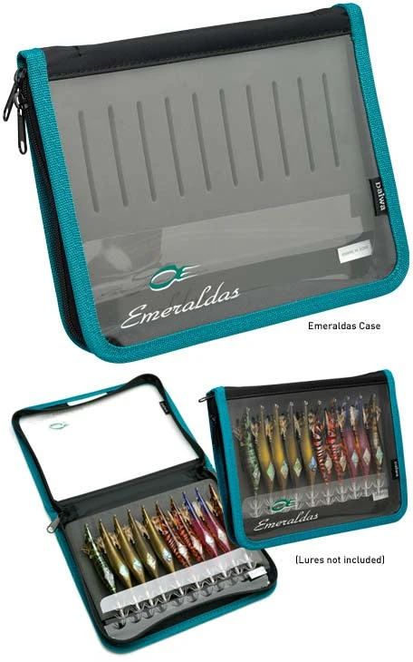 Designed to hold ten jigs ranging from size 2.5 to 4, this is the best way to store our Emeraldas jigs and used in conjunction with the Emeraldas Flap bag, which holds two cases, this is the perfect accessory for the avid eging angler.