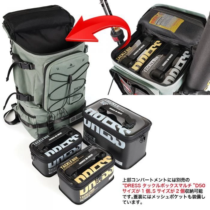 If you put a cooling agent, it will also be a simple cooler box. The upper row of the main space contains a DRESS tackle box multi.