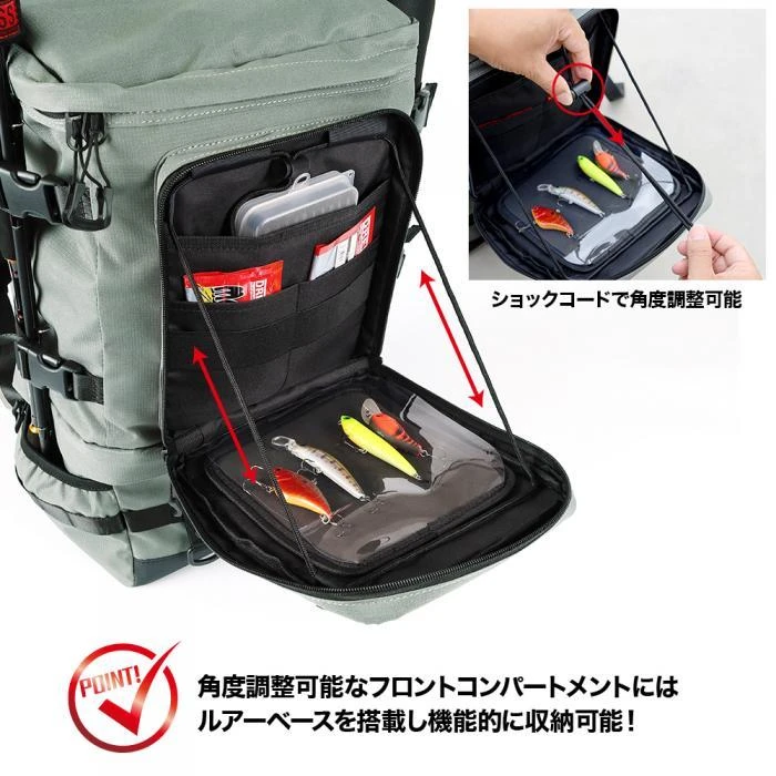 pocket that can insert the rod case and landing tool After inserting it, it is also possible to adjust the size with a belt and fix it.