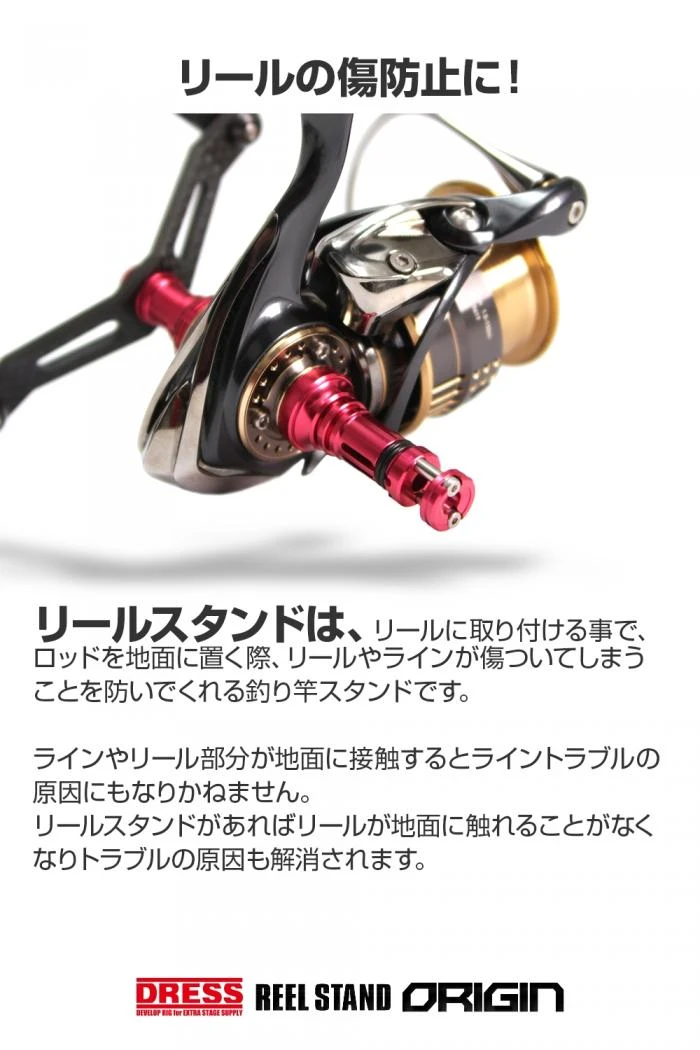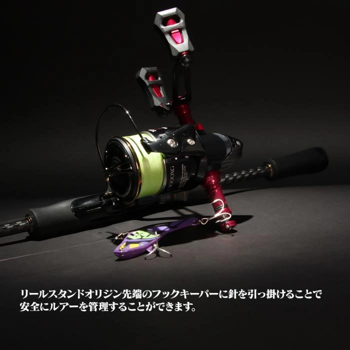 A reel stand to prevent your reel from getting scratched and provides an anchor point for lures when you are not fishing. The reel stand can be used on both Shimano and Daiwa reels, see the compatibility list below for more info.
