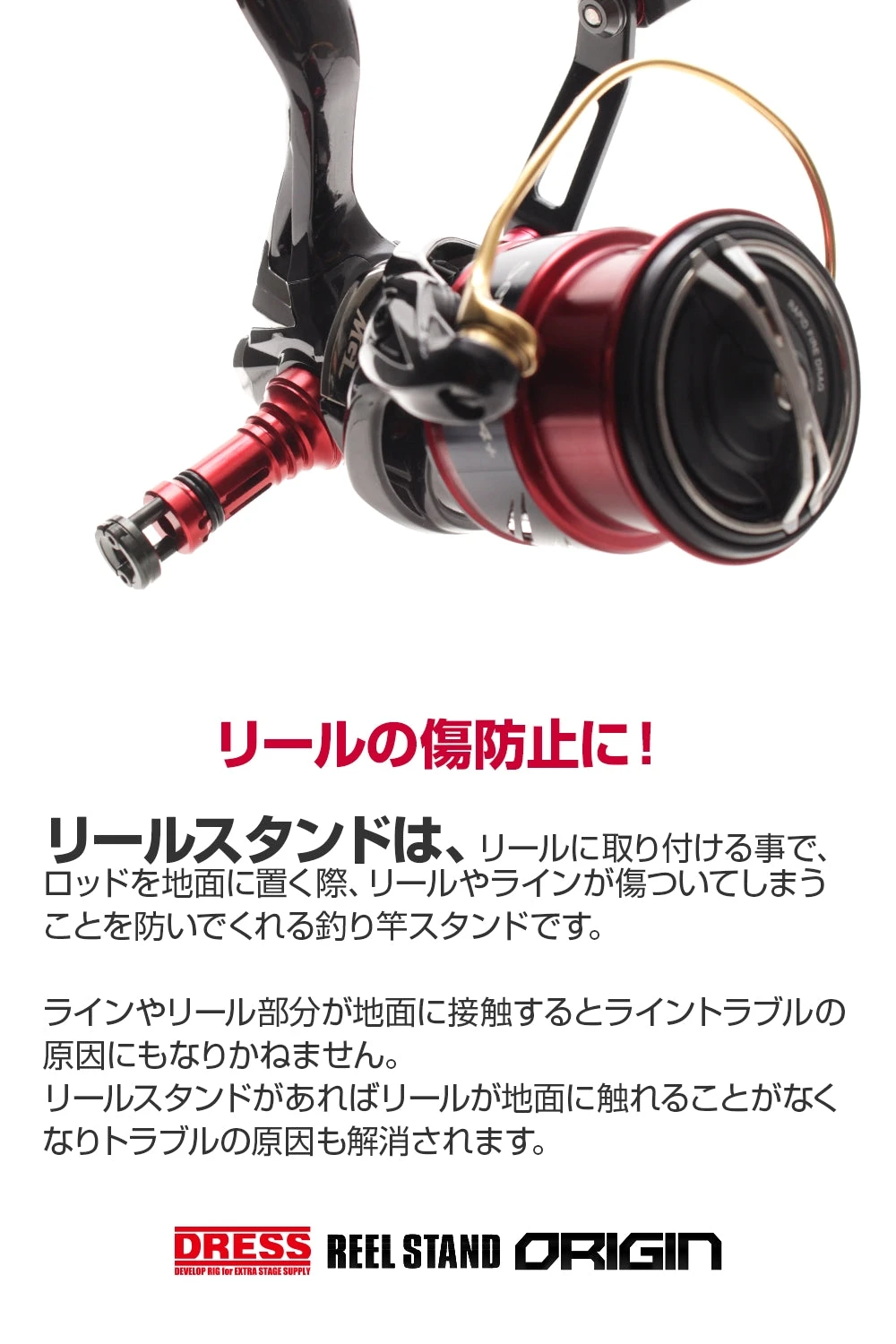 A reel stand to prevent your reel from getting scratched and provides an anchor point for lures when you are not fishing. The reel stand can be used on both Shimano and Daiwa reels, see the compatibility list below for more info.