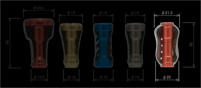 Livre Custom Reel Knob dimensions (as shown in the photo) are: 36mm in length, 20mm on the palm side and 21.3mm on the reel side.