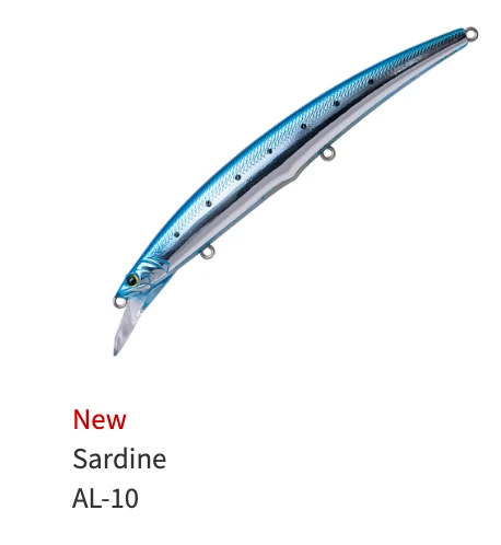 The Ark Rover AR-140S was made as the ultimate Jerkbait which has a wide darting action that draws a large arc instead of the usual rolling/wobbling action that most are other jerkbaits have. This large darting action will instinctively switch on a pelagic species predation switch. This lure features a weight system that focuses on materials and movement of the center of gravity of the lure with a body shape that thoroughly reduces air resistance and suppresses shaking during flight and achieves long casts even in headwinds.