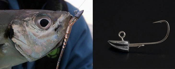 The metal worm keeper securely holds small ajing soft plastics. By reducing the displacement of the worm in the deeper areas, it efficiently catches the bite of yellowtail. The jighead shape accurately captures the water flow demonstrates a smooth drop.Â