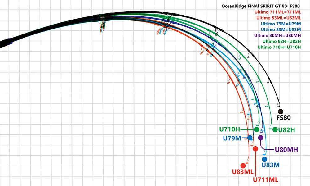 Medium-sized miyoshi, large ships, GT, as well as tuna and tuna up to 50 kg. A well-balanced one with flight distance, operability and lightness. Even those who are first challenged, those who are not confident in physical strength can cast 150 g or more of lures on the rod with less power. ML class does not use nanoalloy ® technology because of the characteristic of blank tone which catches cast and fight in the whole bending of the rod. In addition, 83ML is the most flexible in the Ultimo series, and it is finished in an intermediate condition between BIG TUNA and Ultimo. It is one that hid the potential more than the line class because it becomes a fight deployment to lose with little power.