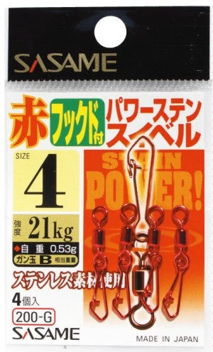 Sasame snap swivels in red colour. High breaking strain despite small size.