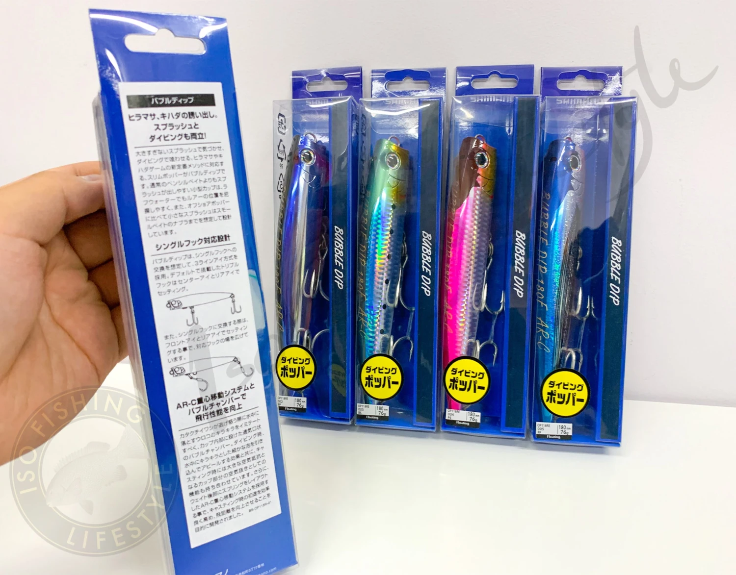 Weighing 76g and available in five fish-catching colours, the Bubble Dip floats at rest and is easy to work in a number of ways. Best described as a stickbait/slim popper hybrid, the cup face also features a bubble chamber to create pop and extra froth and bubble when the lure is worked with the rod. The action is a fast splash with a punching quick dive, which is quite visible even in rough water. The internal AR-C loaded spring weight system means the Bubble Dip can be cast out of sight, but quickly regains its balance on splashdown, ready to be retrieved. The 3X Body design means it’s as tough as they come; delivering higher impact resistance and 3x the strength of comparable lures. And no pulled hook eyelets either, thanks to Shimano’s super strong Through Wire construction. Interestingly, there’s a third eyelet on the belly, which is perfect for attaching a swinging assist hook to.