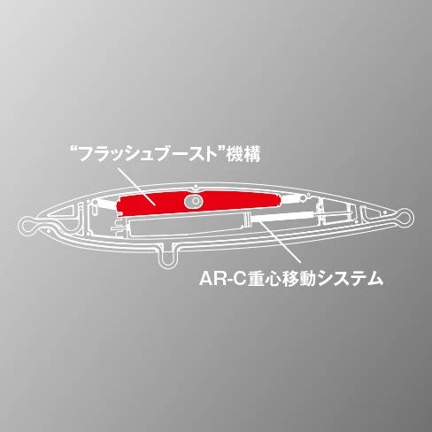 This unique system adopts a moving spring weight. At the time of the cast, it slides to the back of the lure, creating centrifugal force. This accelerates the lure, and during flight it stays straighter and is more direct, resulting in on average a 20% improvement in casting distance as well as higher accuracy. upon landing, the spring shifts the weight forward and the lure regains its balance and action.