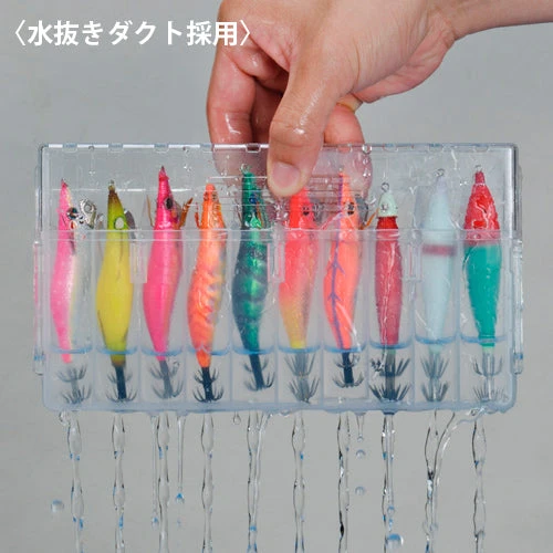 - Features: Stores 10 x Egi size No. 2 to 2.5. Water Ducts for washing lures in place.